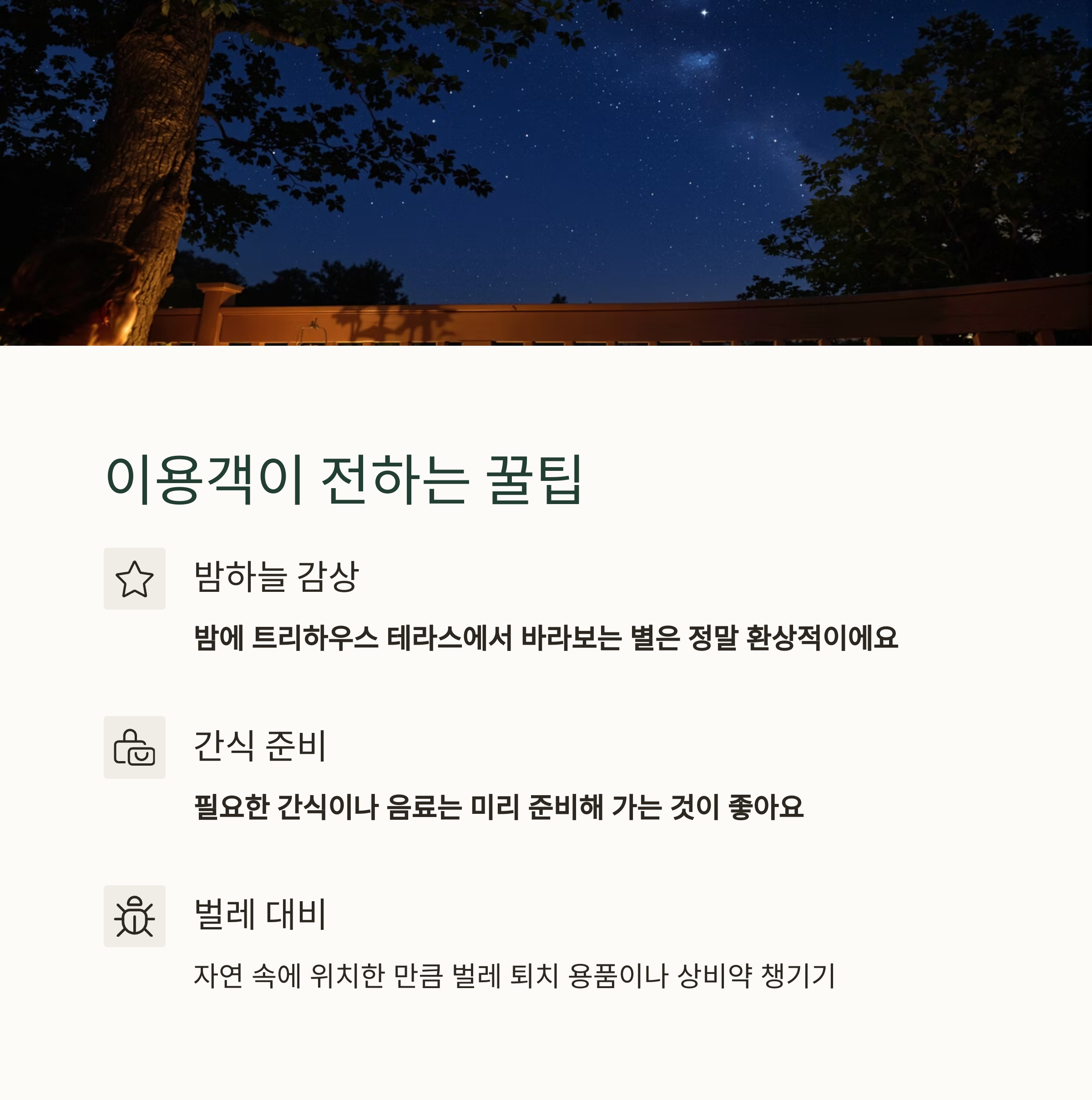 트리하우스 이용객이 전하는 꿀팁: "이것만은 꼭!"