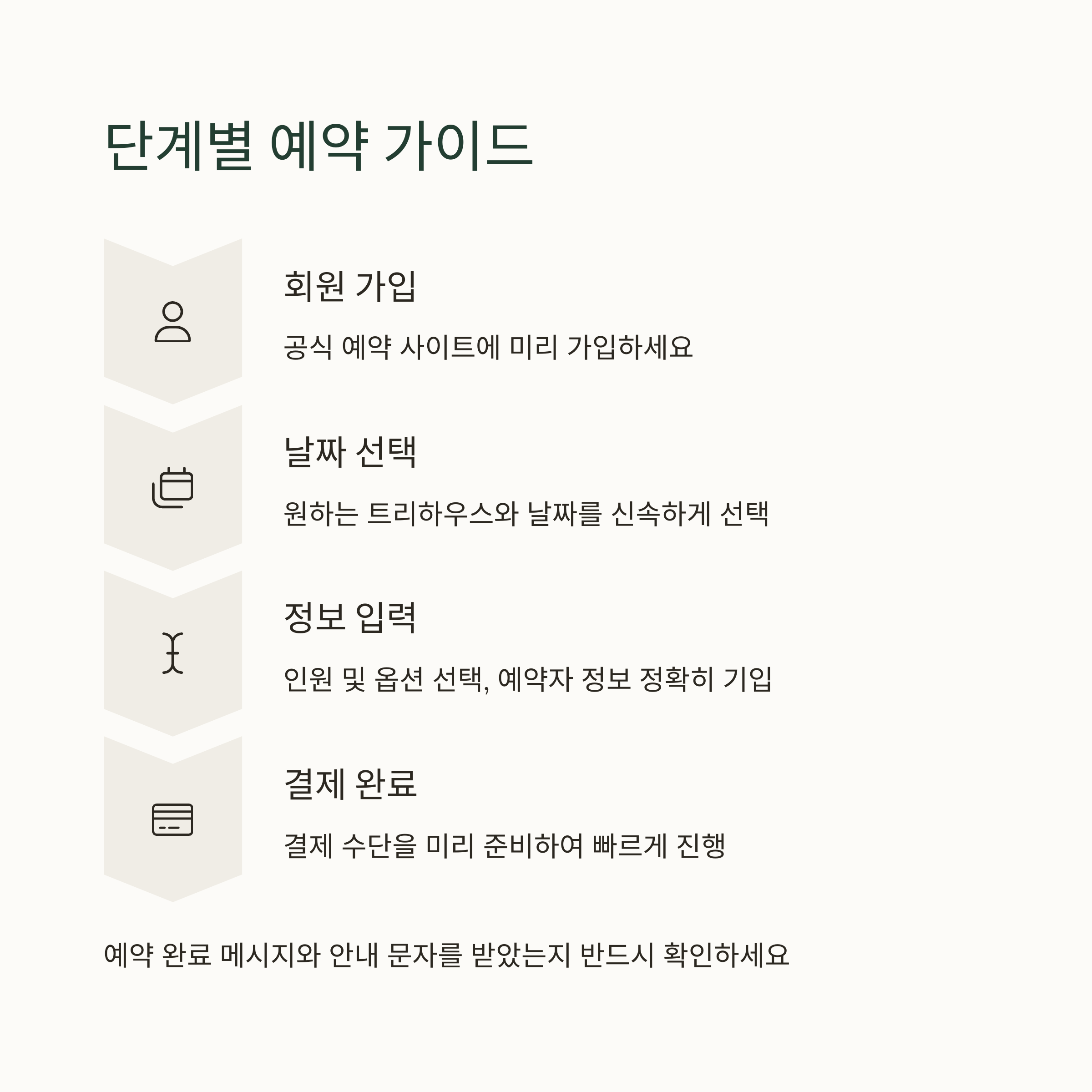 복잡한 절차 없이 차근차근 따라오시면 어느새 트리하우스에서의 특별한 하루를 계획하고 계실 겁니다.