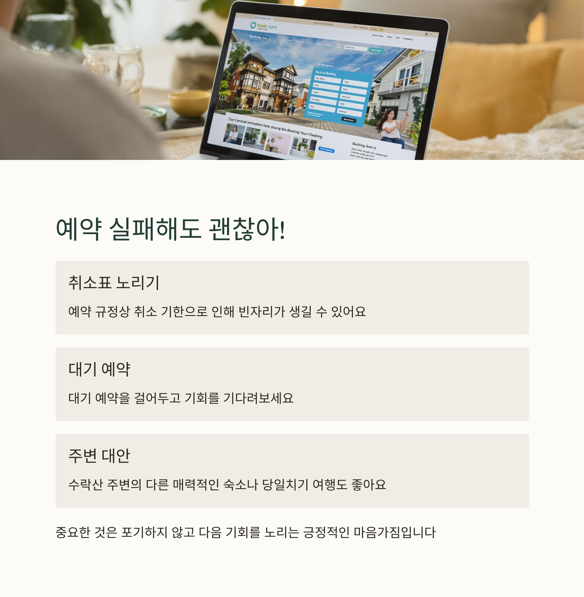 예약에 실패했더라도 몇 가지 대안을 통해 아쉬움을 달랠 수 있습니다.