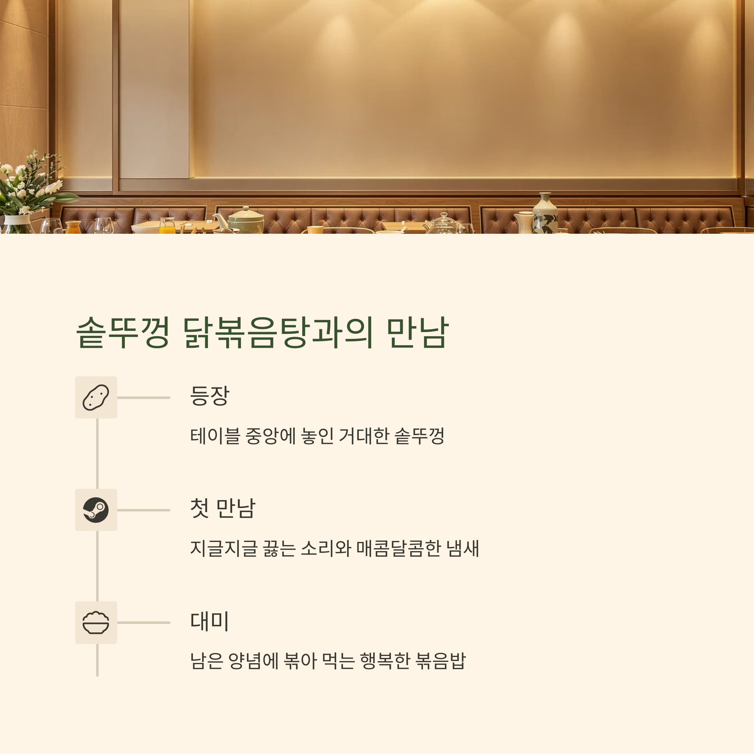 이 글에서는 솥뚜껑 닭볶음탕이 왜 그토록 사랑받는지, 그 맛의 비밀과 다양한 매력 포인트를 깊이 있게 탐구해 보고자 합니다.