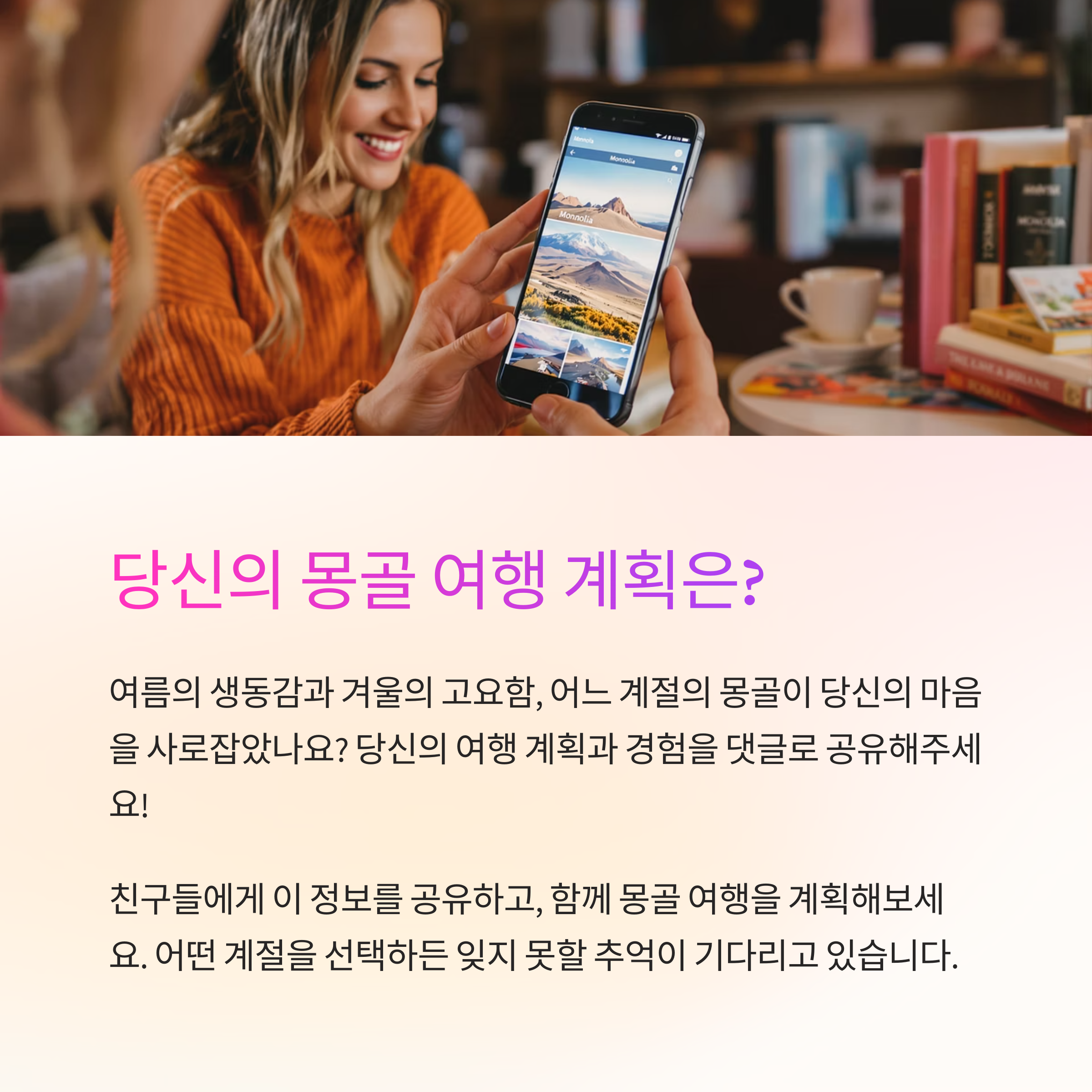 각 계절의 아름다움과 주의사항을 살펴보고 잊지 못할 몽골 여행을 계획해 보세요.