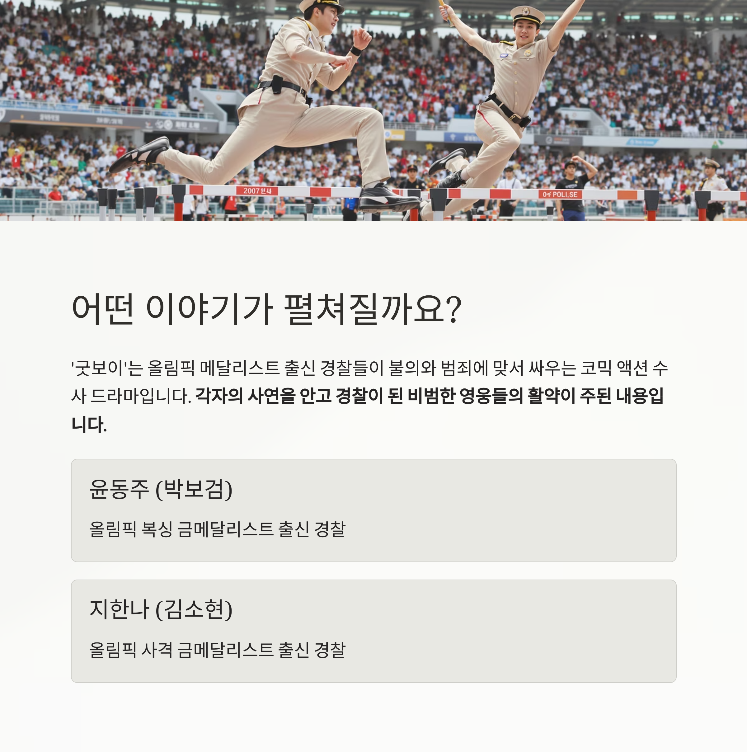 코믹, 액션, 수사, 그리고 감동까지 모두 갖춘 드라마 '굿보이'를 통해 2024년 하반기, 즐거운 시간을 보내시길 바랍니다.