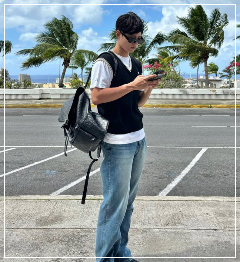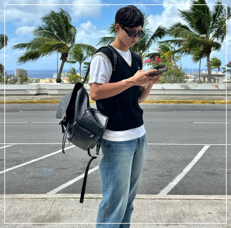 그의 스타일링에서 주목할 점은 과하지 않게 트렌드를 반영한 점입니다.