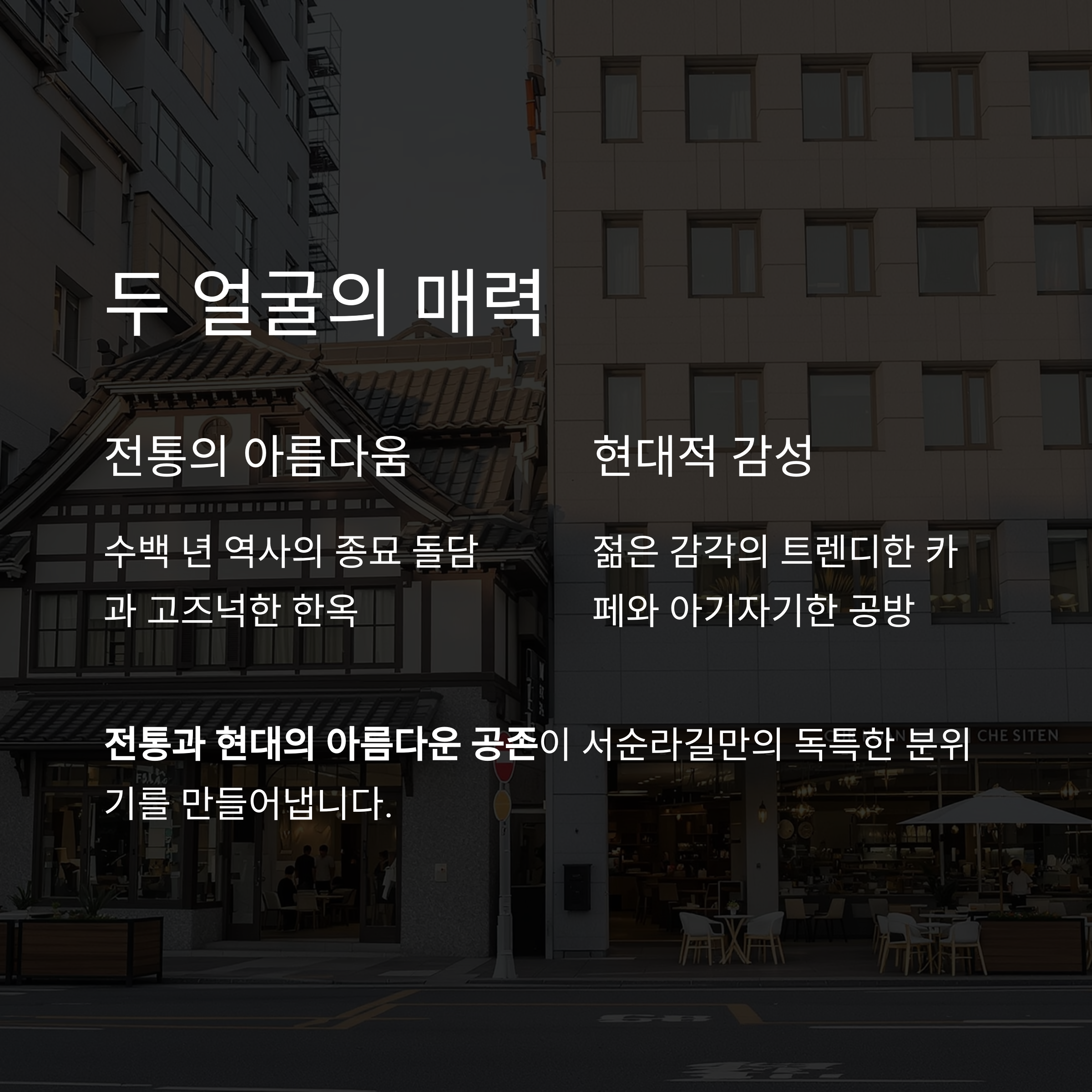 각 공간들은 서순라길의 다채로운 매력을 더해주며, 방문객들에게 잊지 못할 추억을 선사합니다.