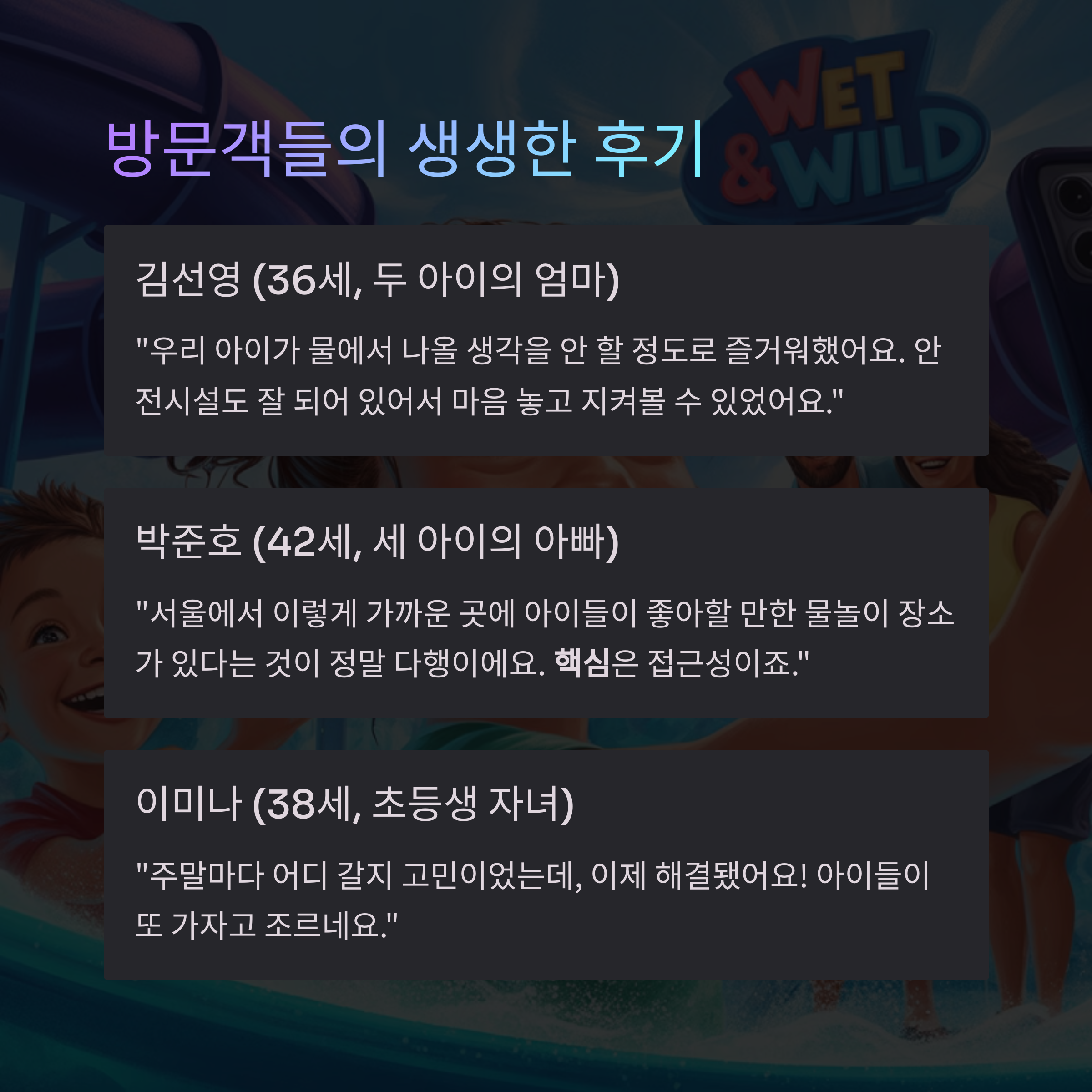 한 방문객은 '우리 아이가 물에서 나올 생각을 안 할 정도로 즐거워했어요.
